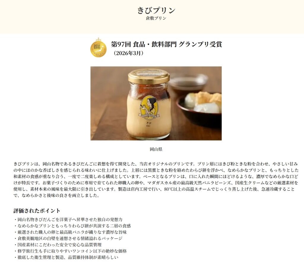 日本フードアナリスト協会に所属している、食の分析や情報発言の資格を持つ23,000人のフードアナリストたちに食品の審査を行っていただき、最高賞のグランプリ受賞となりました。